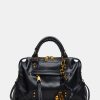 Clever interior organization and a matching pouch give the compact EVELYN BELT BAG BLACK surprisingly roomy storage. Reinforced edges, structured side gussets, and custom hardware add to the substantial look and feel of this top-handle design.