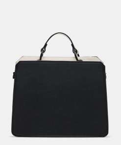Clever interior organization and a matching pouch give the compact EVELYN BAG BLACK/MULTI surprisingly roomy storage. Reinforced edges, structured side gussets, and custom hardware add to the substantial look and feel of this top-handle design.