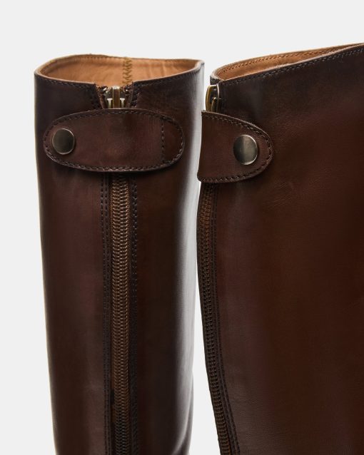Expertly crafted, the BEREN BROWN LEATHER knee-high riding boot features a convenient back zipper for easy on and off. Made with high-quality materials, this boot is both stylish and functional, providing support and comfort for all-day wear. Perfect for any wardrobe, this boot is a must-have for any fashion-forward individual.