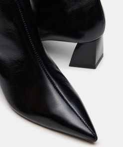 Elevate your footwear collection with the ASHLI bootie, featuring a sleek pointed-toe and a sturdy block heel for balanced support. Crafted as an ankle boot, it offers a refined silhouette that pairs effortlessly with both casual and dressier outfits. The rich materials add a sophisticated touch, making it a versatile choice for expert styling.
