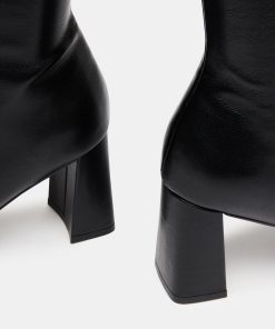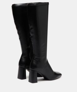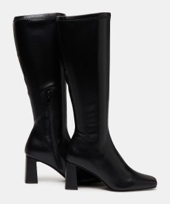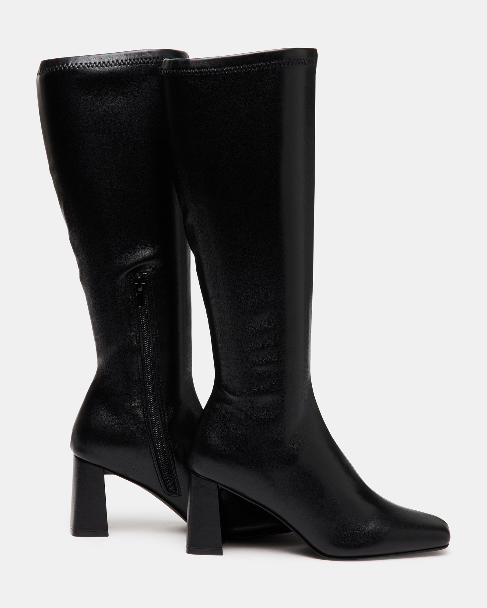 A half-zipper closure gives the HOLLY knee boot a calf-defining fit while an angled block heel and a square-toe giving this style a sharp finish.