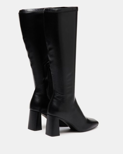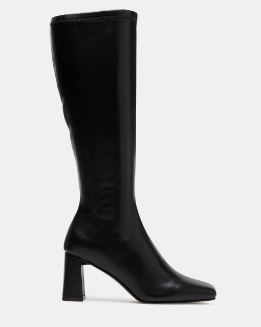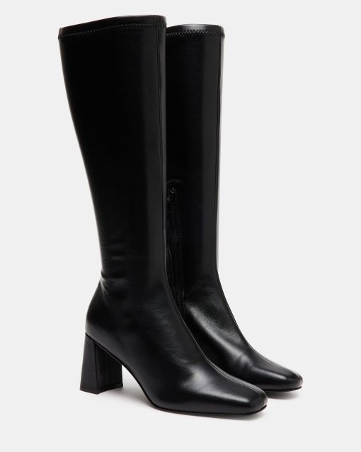 A half-zipper closure gives the HOLLY knee boot a calf-defining fit while an angled block heel and a square-toe giving this style a sharp finish.