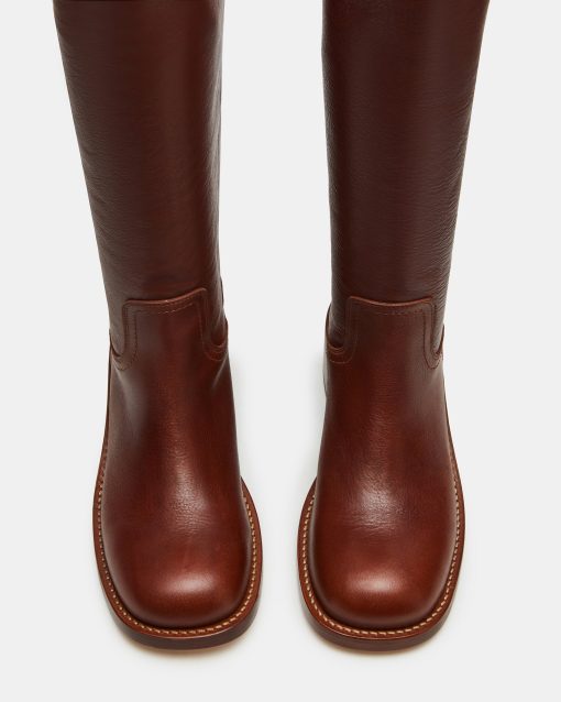 Effortlessly elevate your style with the RIGGS RUST LEATHER WIDE CALF boot. With its square-toe and sleek design, this just-under-the-knee boot is a must-have for any fashion-conscious individual. This timeless boot provides both comfort and sophistication, making it the perfect addition to any outfit.